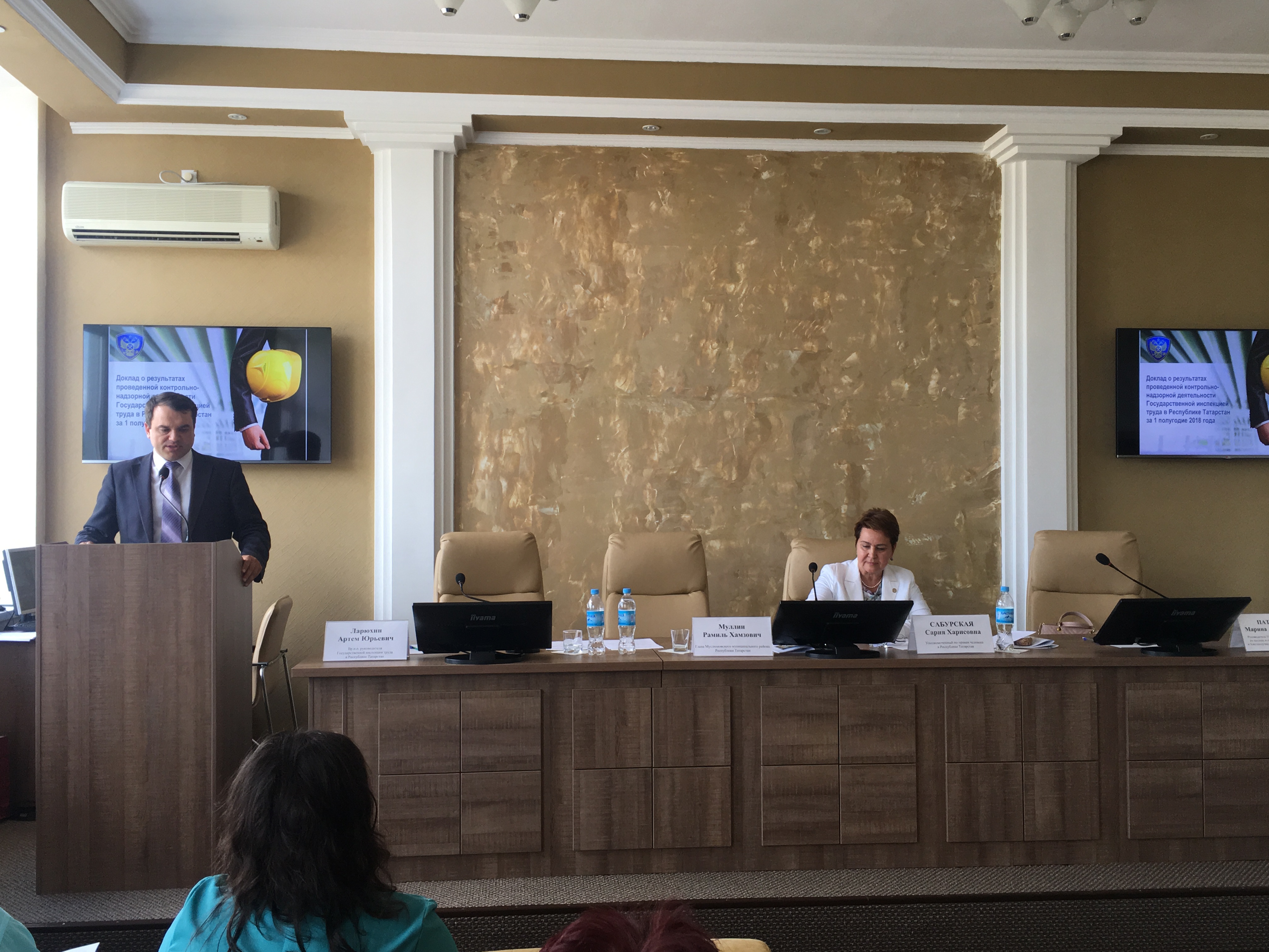 С докладом о результатах проведенной контрольно-надзорной деятельности Государственной инспекции труда в Республике Татарстан за 1 полугодие 2018 года выступил Артем Ларюхин. За первое полугодие текущего года в инспекцию поступило 3281 обращение. По итогам работы, в том числе по рассмотрению обращений граждан, проведено 1579 проверок соблюдения работодателями трудового законодательства. В выступлении были отмечены наиболее актуальные вопросы, волнующие граждан республики: в том числе, возникающие при увольнении работника, вопросы ненадлежащего оформления трудовых отношений, вопросы безопасности условий труда.